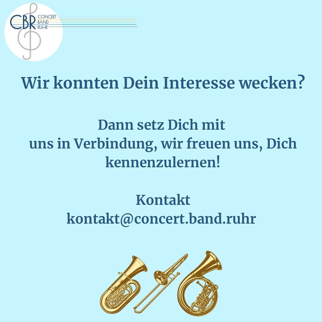Setz Dich gern mit uns unter kontakt@concert.band.ruhr in Verbindung. Wir freuen uns auf Dich!