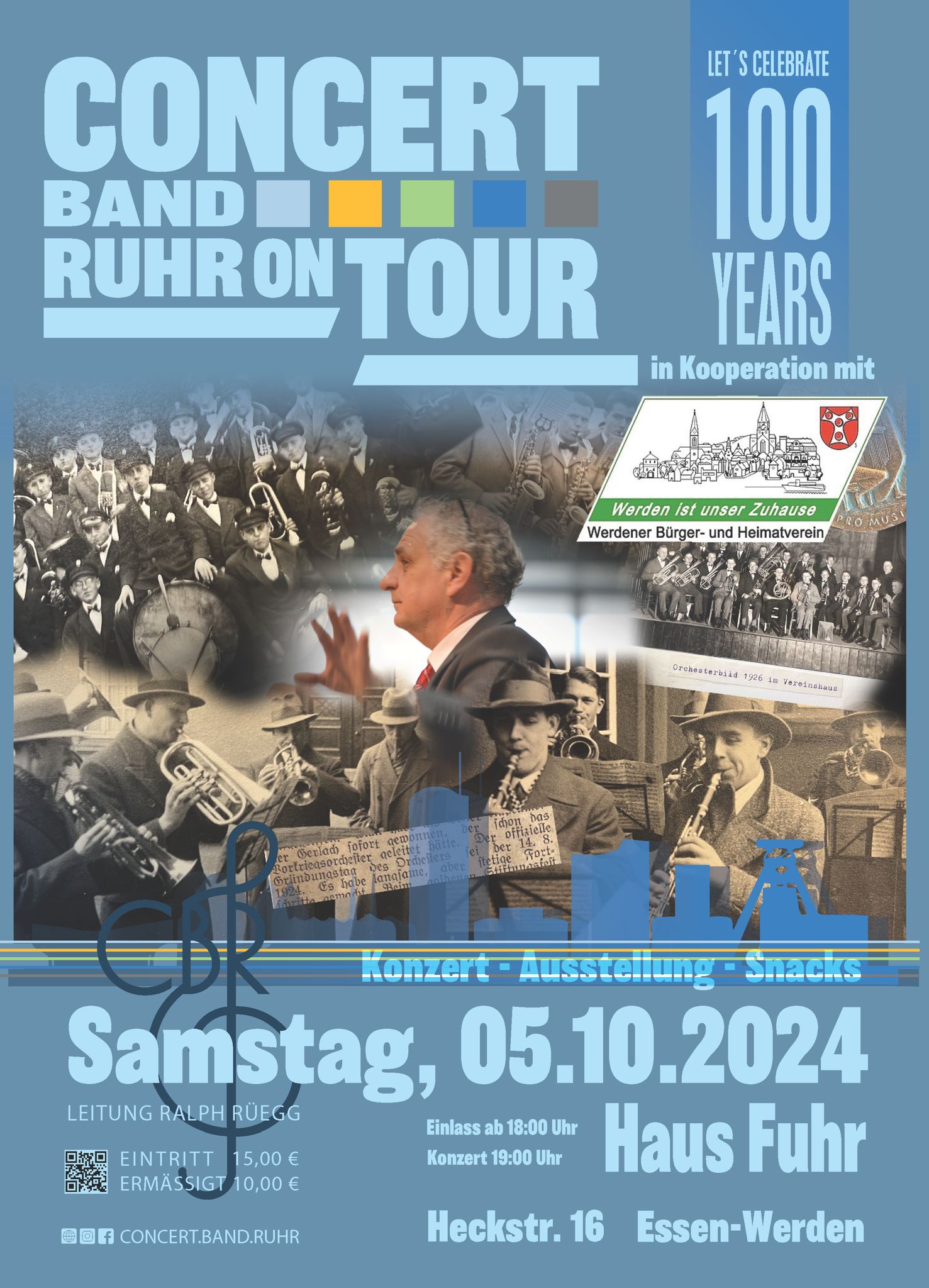 In einem festlichen Rahmen und mit großer Vorfreude lädt die Concert Band Ruhr in Kooperation mit dem Werdener Bürger- und Heimatverein am Samstag, den 05.10 um 19 Uhr (Einlass ab 18 Uhr) zum Abschlusskonzert des 100-jährigen Jubiläums des Orchesters ein.
