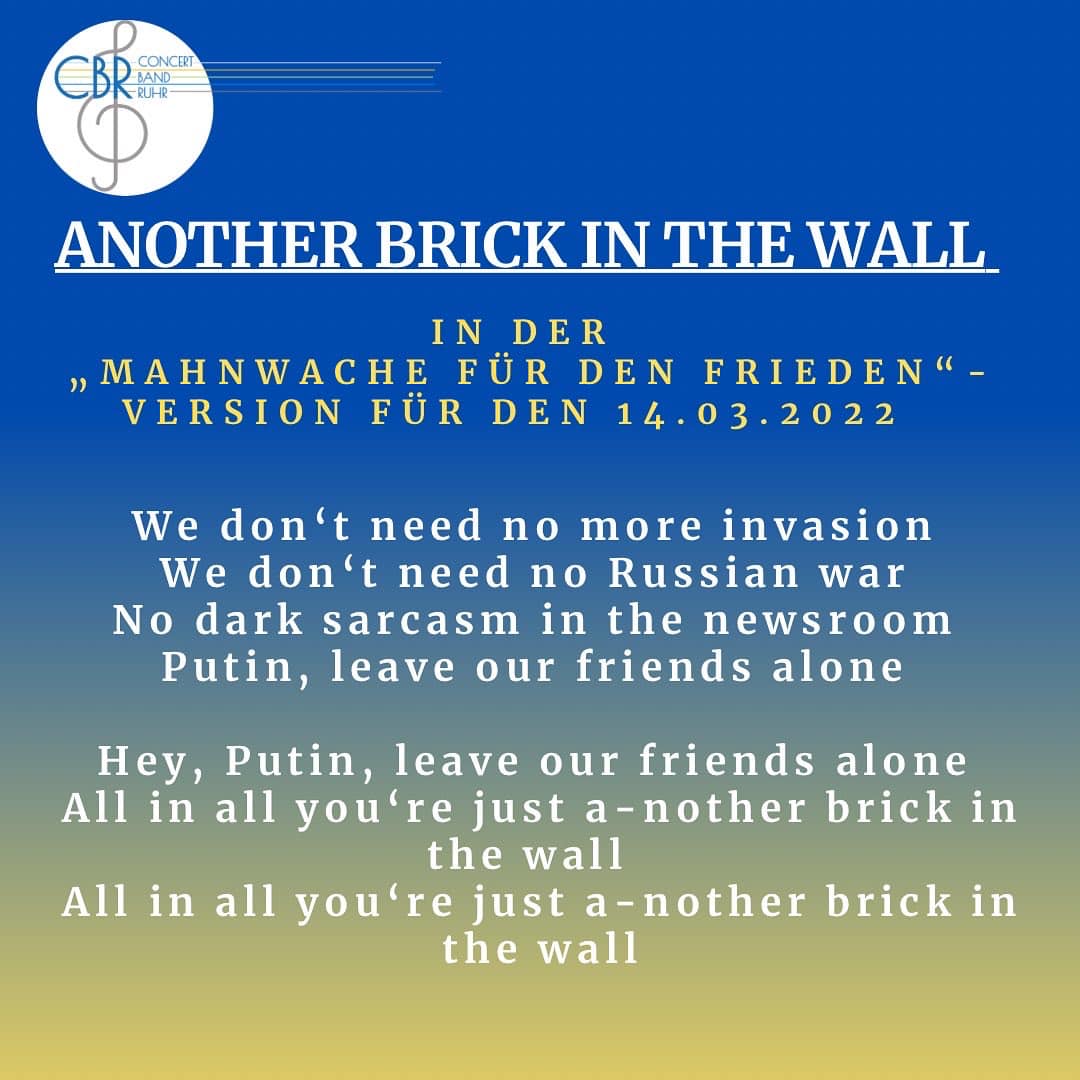 Unser musikalisches Programm enthielt auch das Stück Another Brick in the Wall von Pink Floyd, dessen Text wir passend zur Situation umgedichtet haben.